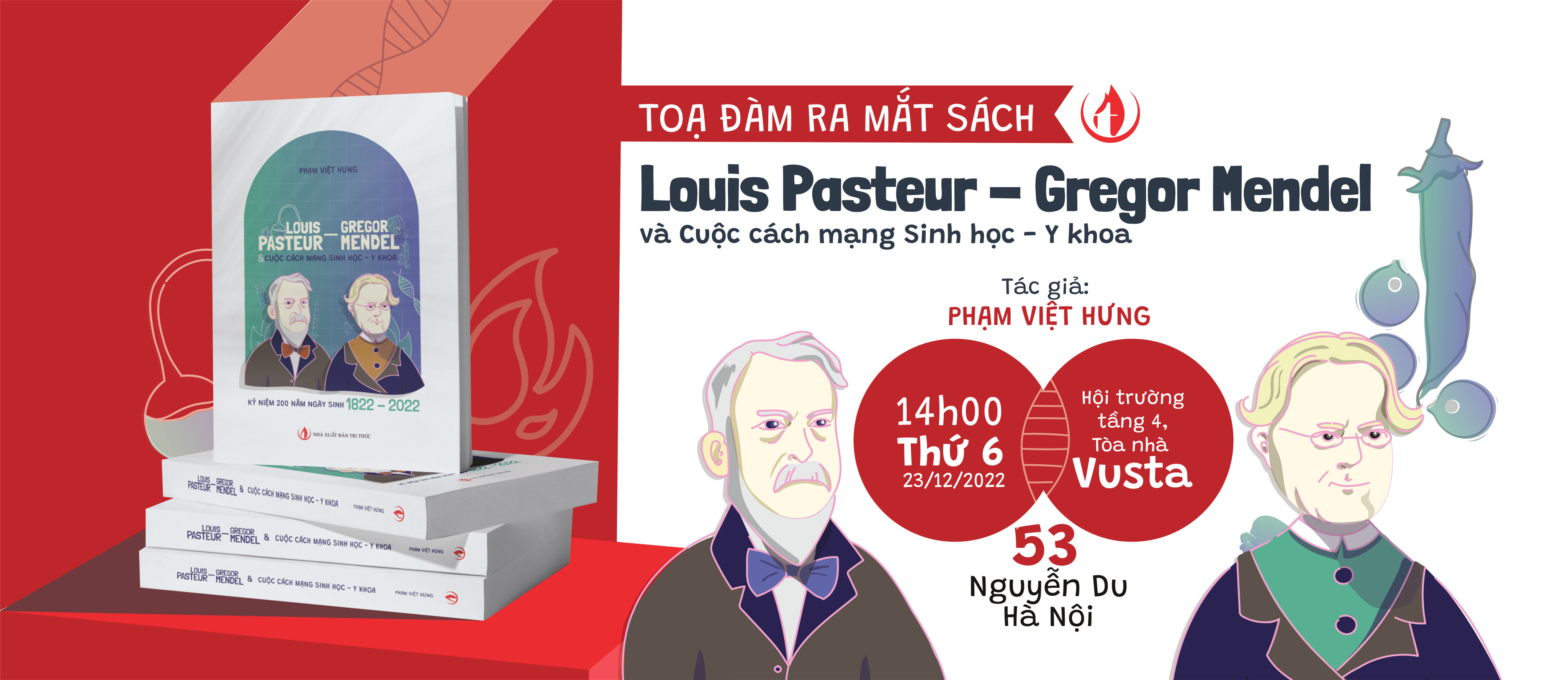 Nhân dịp kỷ niệm 200 năm ngày sinh của Louis Pasteur và Gregor Mendel, Nhà xuất bản Tri Thức tổ chức tọa đàm Ra mắt cuốn sách: