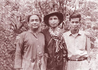 | Nhà văn Nguyễn Văn Bổng thời kỳ ở chiến trường miền Nam. Từ trái sang: Nhạc sĩ Lưu Hữu Phước, nhà văn Nguyễn Văn Bổng và nhà văn Lý Văn Sâm. |