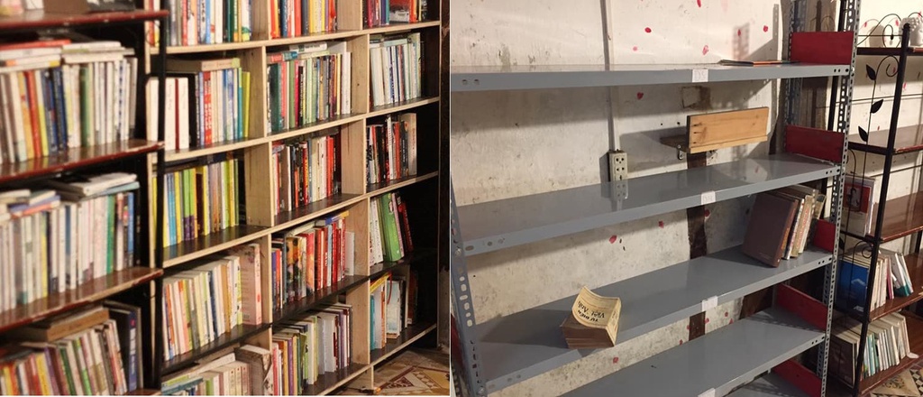 Thư viện D Free Book trước và sau khi bị mất cắp gần 1.000 cuốn sách sau khi nghỉ dịch COVID – 19.